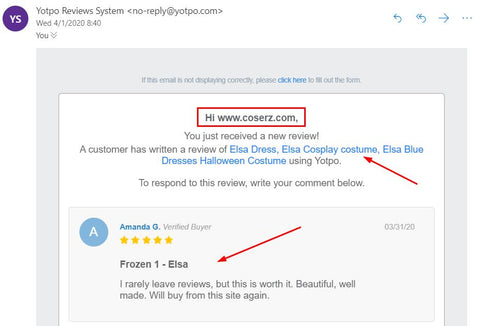 Today, CoserZ team received a new review of our Frozen Princess Elsa costume (We will list this dress with the link in our store as below) from the objective and fair Yotpo company.
